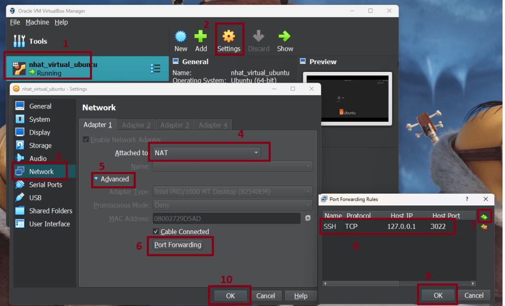 This guide will walk you through the process of establishing an SSH connection to your Ubuntu virtual machine running on VirtualBox within a Windows 11 environment. We’ll cover the necessary steps to configure port forwarding and initiate the SSH connection from your Windows host.